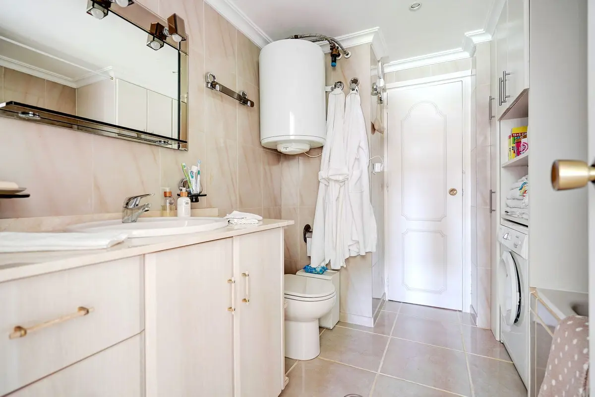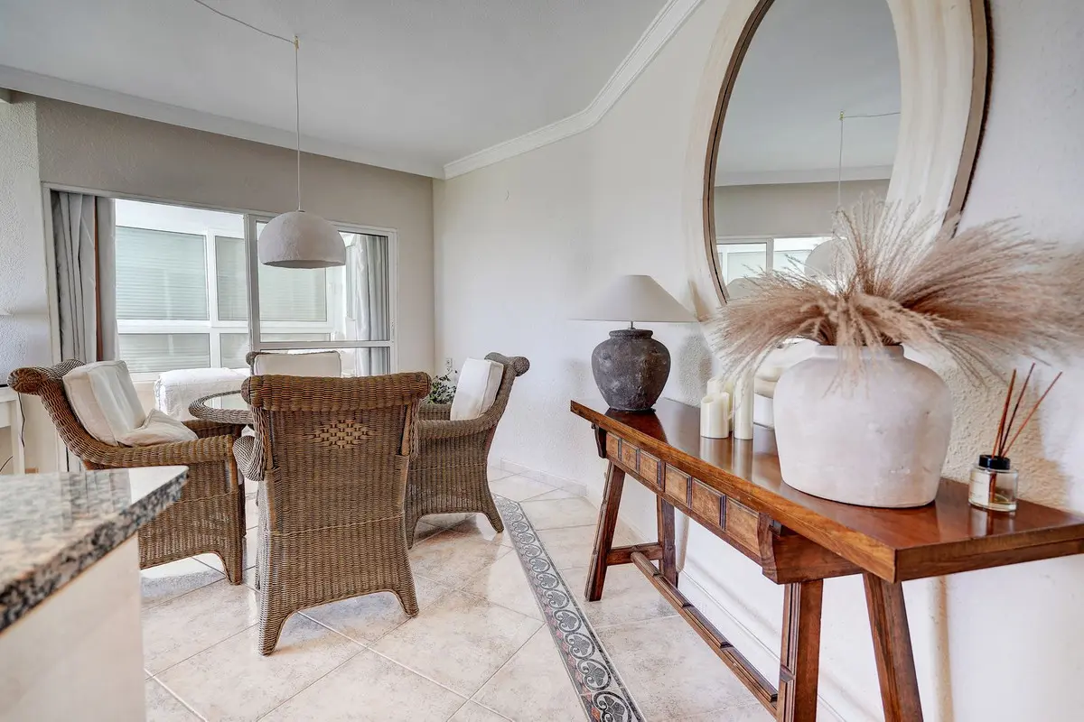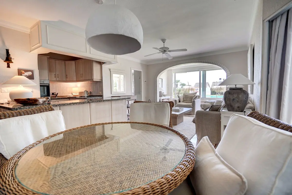 The apartment is presented in very good condition, sold fully furnished and key ready. The standout feature is the enlarged open-plan living space, where the original terrace has been incorporated into the lounge—creating a brighter, more spacious layout unique within the community. The property includes two bedrooms, a Jack and Jill bathroom, double glazing, and fibre optic internet, offering both comfort and practicality.