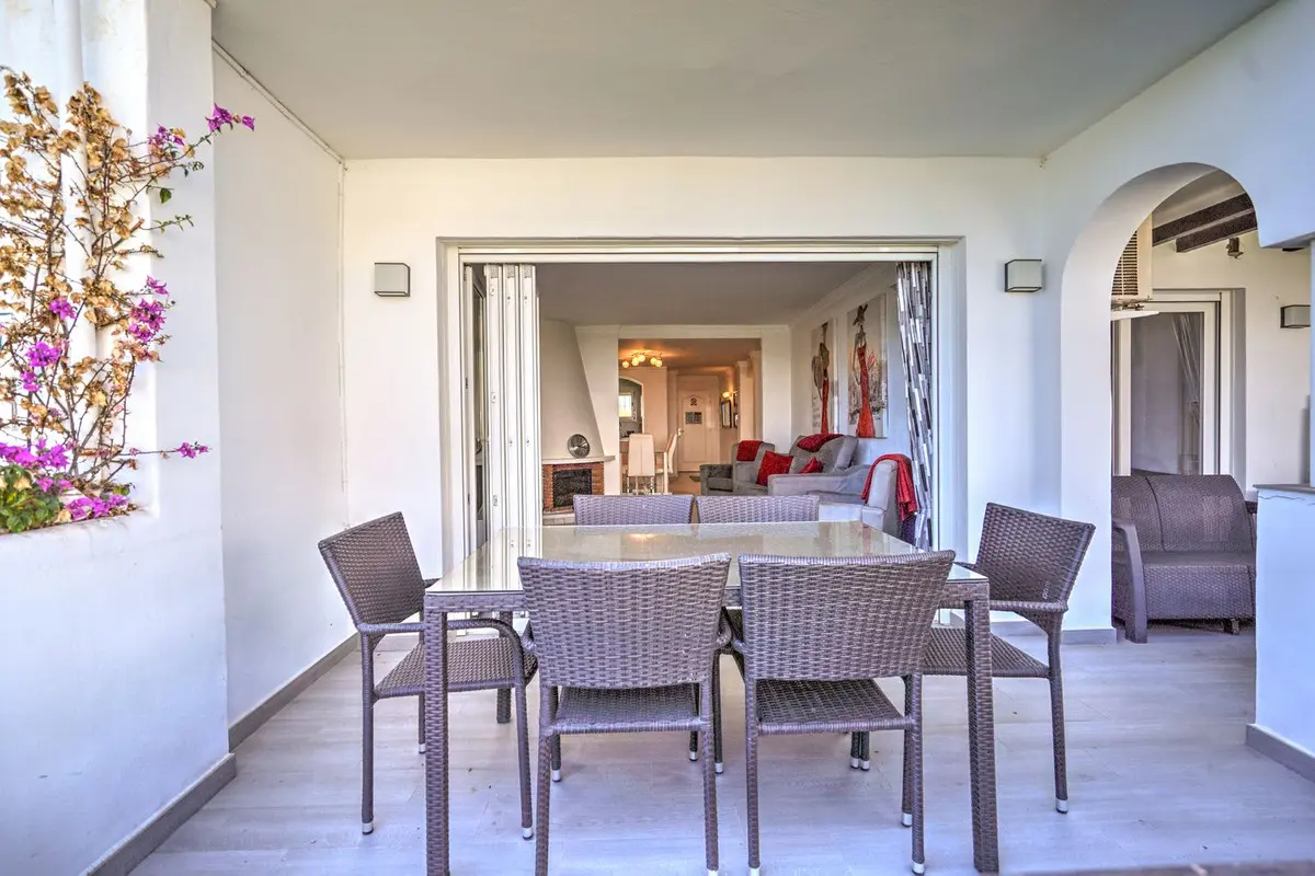The highlight of this home is the large private terrace, perfect for dining, sunbathing, or relaxing outdoors. With direct access to the landscaped communal gardens and just steps from the beach, it's ideal for both holiday homes and year-round living. Additional features include marble floors, air conditioning, double glazing, and electric blinds for added comfort. This apartment is a rare find in one of Calahonda's most desirable beachfront communities.