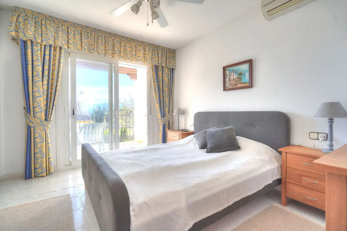 The entrance level welcomes you with a hallway leading into a bright and spacious lounge-dining area complete with a fireplace. From here, sliding doors open onto a generous terrace equipped for outdoor living, ideal for dining, entertaining, or enjoying the sunset. This level also includes a large independent kitchen with a serving hatch to the lounge, a guest toilet, and excellent storage. The first floor hosts two bedrooms with built-in wardrobes and two bathrooms, including a main bedroom with an en-suite, dressing area, and private terrace overlooking the golf course. The top floor is dedicated entirely to the master suite, featuring an en-suite bathroom and a private terrace with elevated panoramic views.